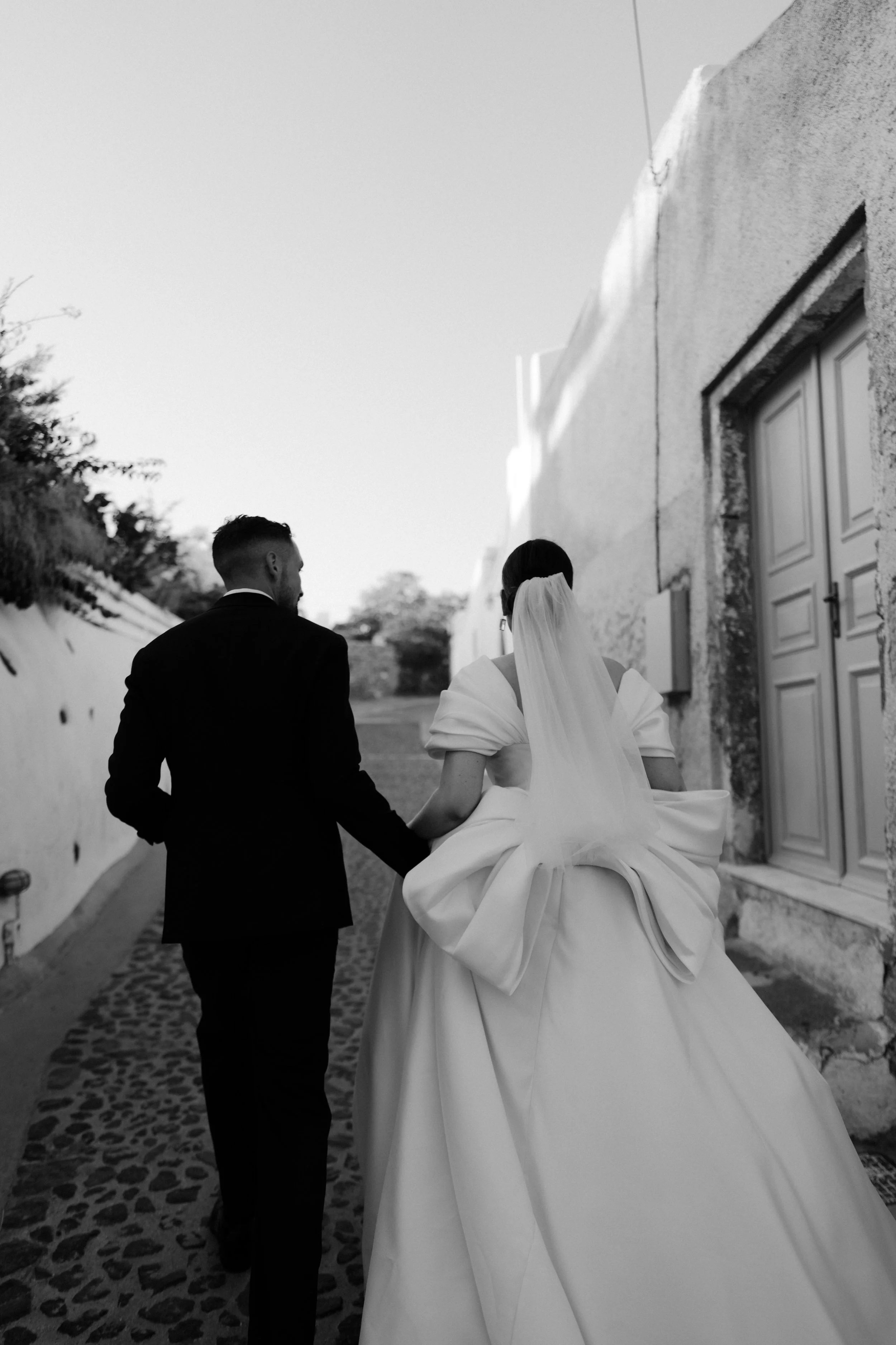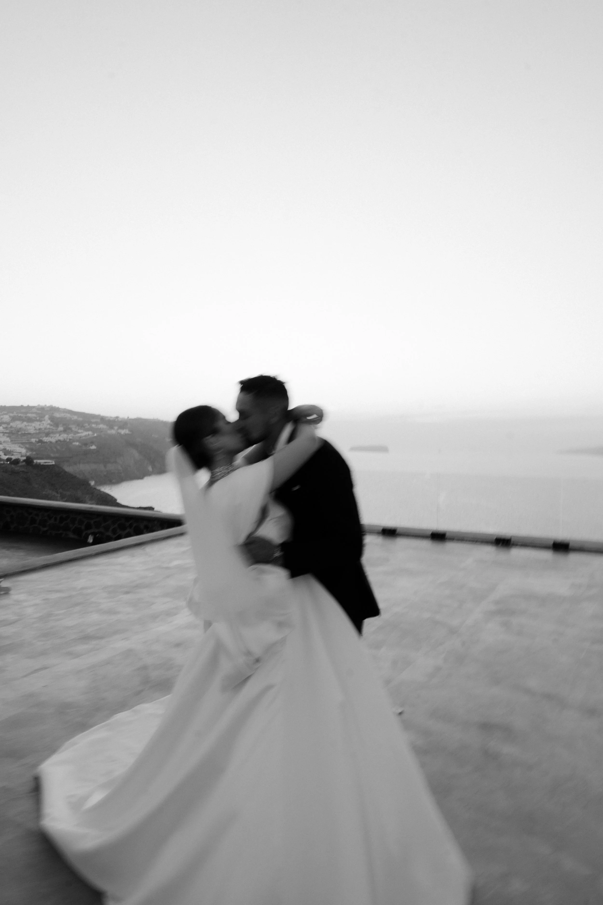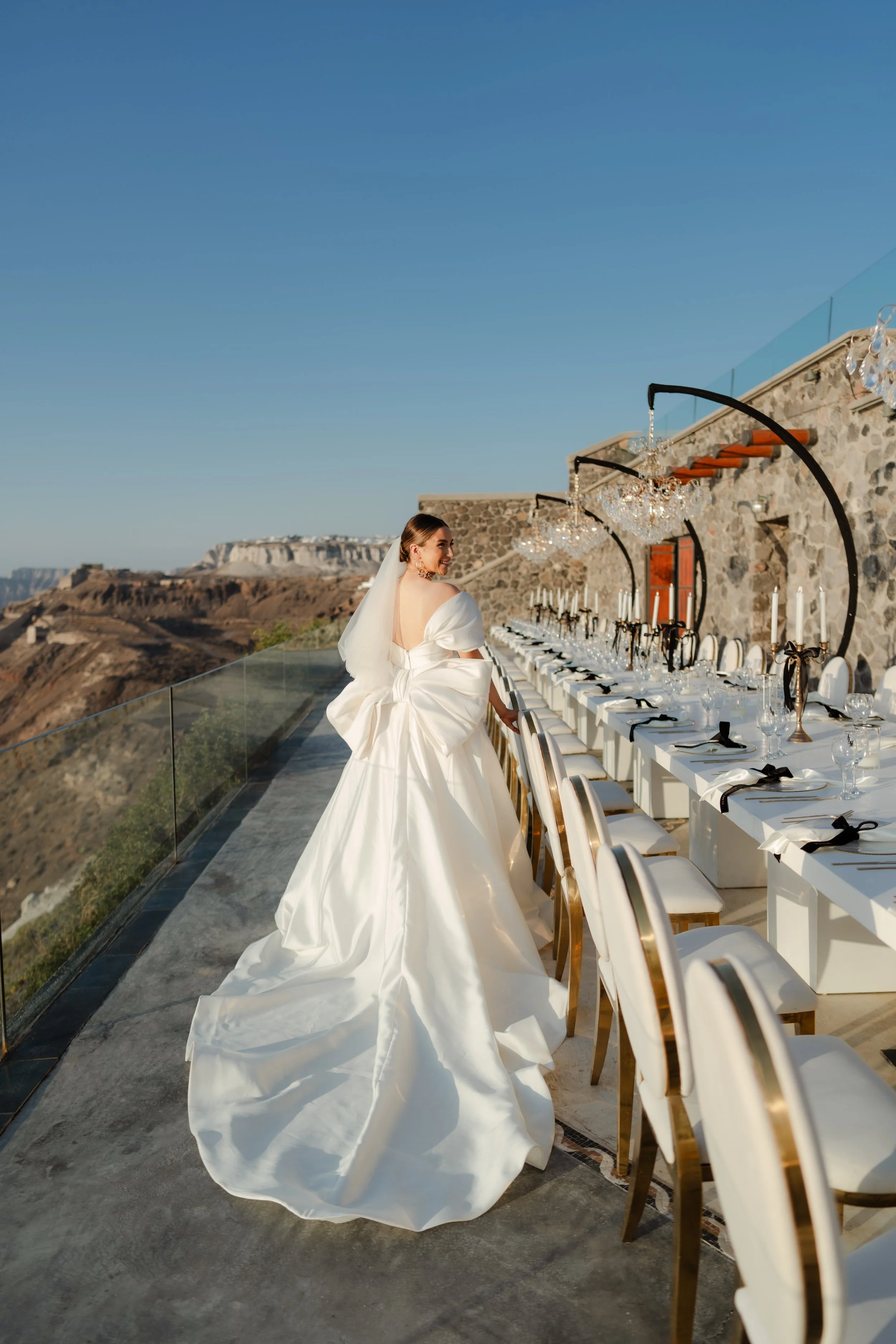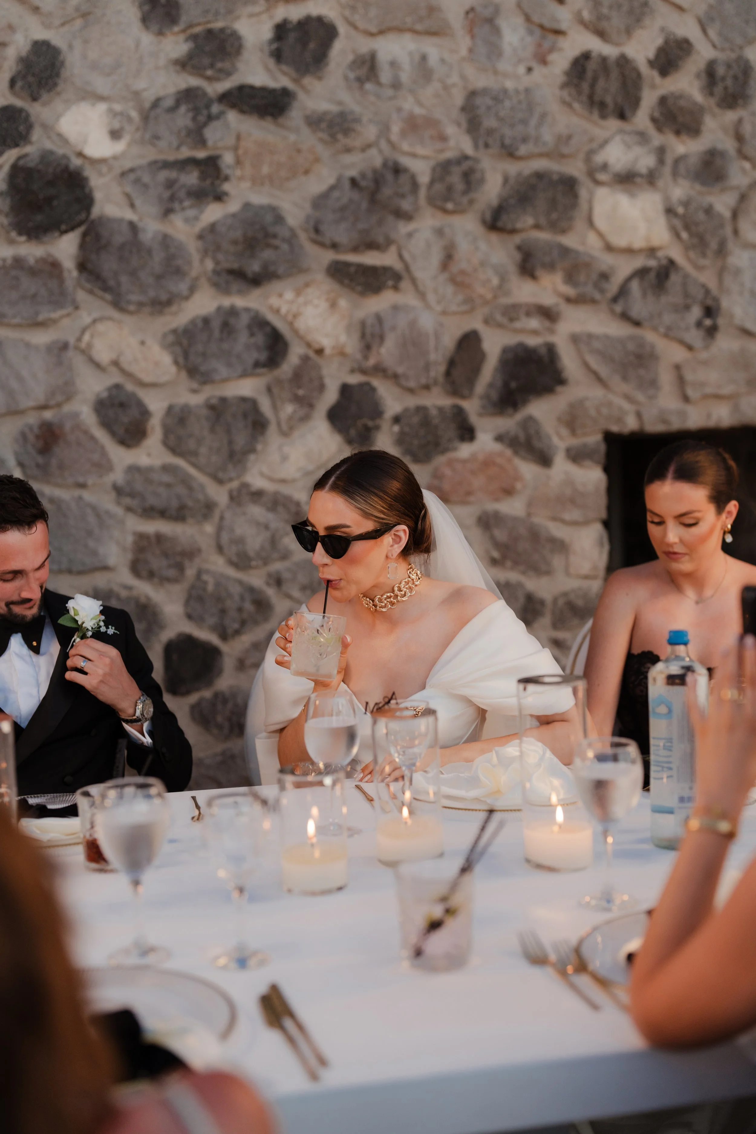 Anna and Michael’s Santorini Dream Wedding: A Moment of Elegance and Chic Sophistication… Anna beautifully wore Anti by Eva Lendel and it completed the stylish day.