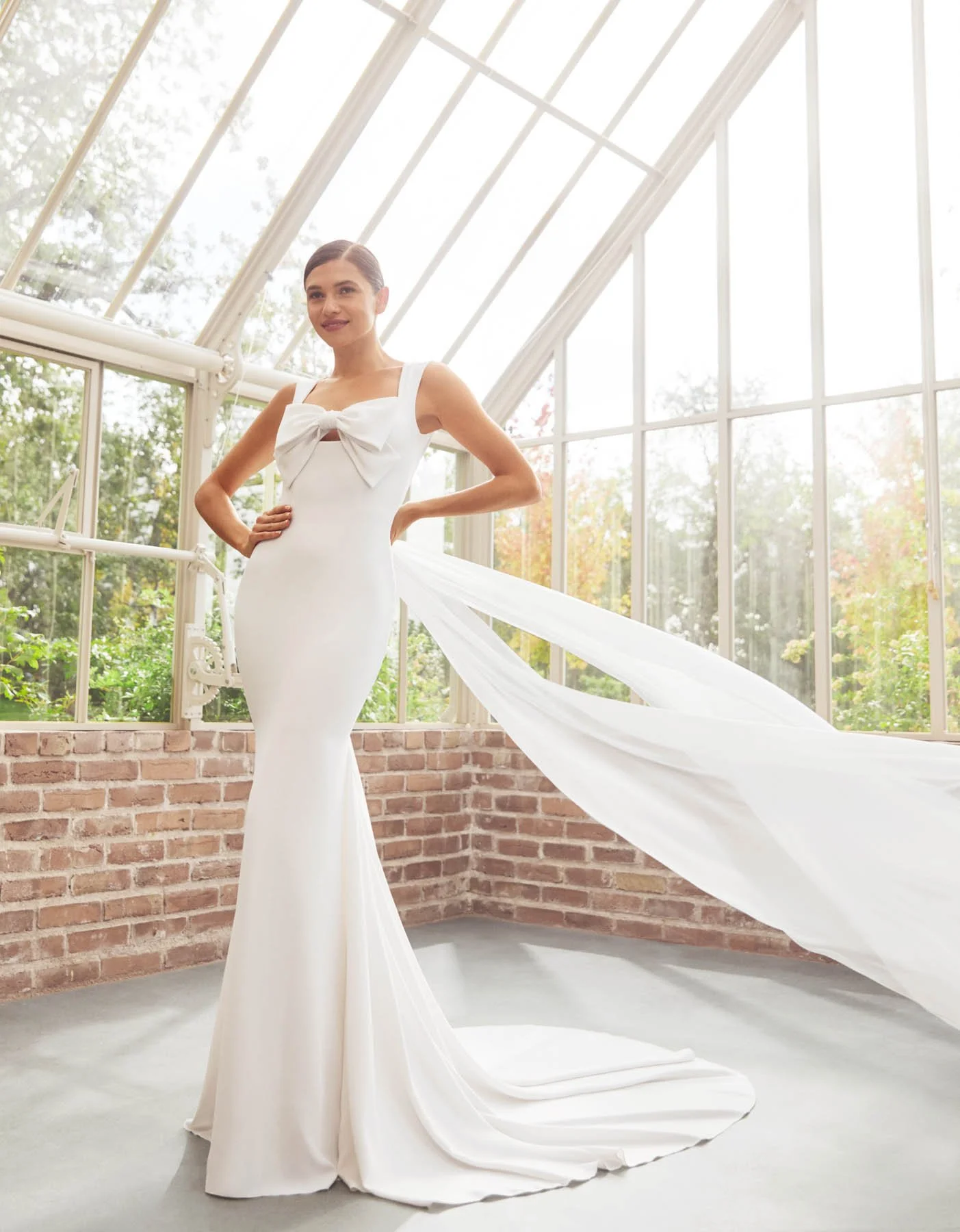 Make a statment with the Enith dress. With a bow centre and a thick sqaure strap, in slinky crepe.